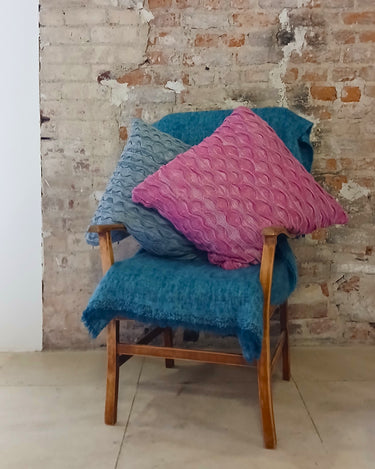 The ShuttleKnit Ruffle cushion is a handcrafted pink knitted cushion made using recycled Sari Silk Yarn. Designed and made in Ireland, this cushion brings softness, movement and understated character to any living space.